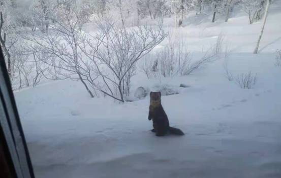 “冰雪畫廊”工作人員介紹,“紫貂只在天氣暖和或者雪不是很大時才會出現(xiàn),這幾天天氣回暖,紫貂出現(xiàn)的相對頻繁一些。雖然投喂了火腿腸,但是它們很警覺,要等人離開很久,才會靠近食物?!?/span>