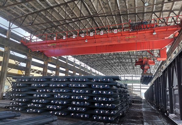 鋼材成品庫(kù)吊車吊運(yùn)鋼材