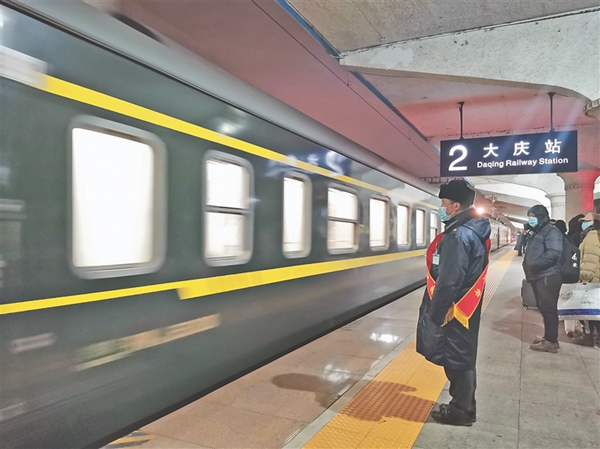 由于節(jié)后返程客流劇增,大慶地區(qū)去往海拉爾的4趟旅客列車無法滿足企業(yè)返崗需要,為幫助企業(yè)解決油田職工返崗復工困難,哈爾濱局集團公司全力協(xié)助大慶油田有限責任公司辦理職工出行事宜,為企業(yè)量身定制了油田職工返崗復工專列開行方案。在春運期間運力緊張的情況下,專門調(diào)集10輛空調(diào)車體,全面進行設(shè)備檢修維護和車輛消毒作業(yè),滿足石油工人出行需求。負責運輸組織工作的大慶站為油田職工提供專項聯(lián)絡(luò)、專區(qū)候車、專人引導服務,及時辦理團體購票,增開進站通道,提前做好候車區(qū)域通風、消毒和保潔工作,配合地方政府嚴格落實進站掃碼、測溫等防疫措施,在驗票進站、安檢、候車、乘車等環(huán)節(jié)設(shè)置人員進行引導。并利用小喇叭、電子顯示屏、車站廣播等載體,循環(huán)播放疫情防控措施、登乘列車注意事項,引導務工人員分散候車就座。鐵路部門精心抽調(diào)服務經(jīng)驗豐富的哈爾濱客運段北京車隊列車工作人員負責乘務工作,提前做好列車通風消毒和防疫保潔工作,為乘客準備了一次性醫(yī)用口罩和消毒洗手液,全力營造健康安全的出行環(huán)境。