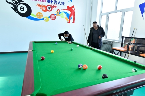 干部職工在林業(yè)局職工之家活動室一決高下(郭曉冰 攝)