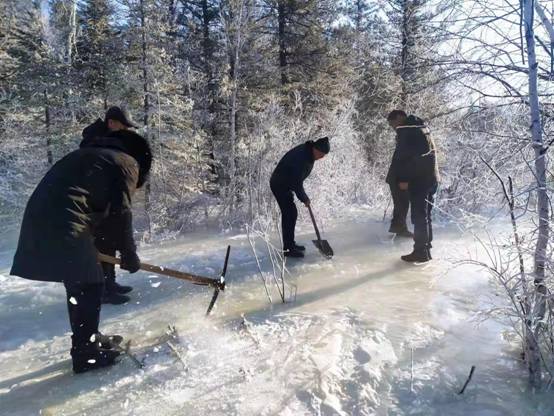 圖為新林林業(yè)局組織人員對(duì)營林撫育生產(chǎn)結(jié)冰道路進(jìn)行清理(崔紅霞 攝)