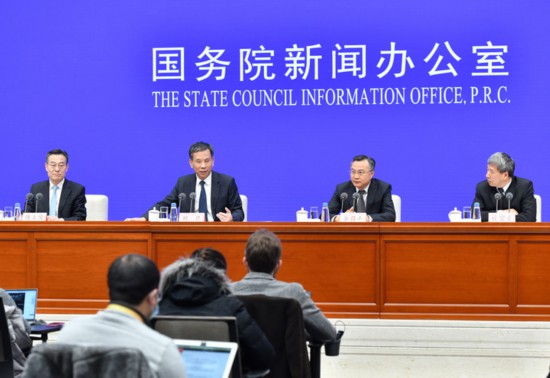 2月22日,財(cái)政部部長(zhǎng)劉昆、財(cái)政部副部長(zhǎng)余蔚平、財(cái)政部副部長(zhǎng)許宏才出席國(guó)新辦新聞發(fā)布會(huì)。新華社記者李鑫攝