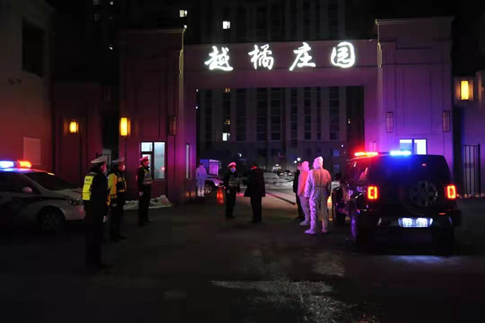 晚8時(shí)55分,南越橘莊園小區(qū)北門前警燈閃爍,小區(qū)內(nèi)點(diǎn)點(diǎn)燈火。9名伊美區(qū)交警大隊(duì)民警、14名治安大隊(duì)民警在卡口靜靜值守。初春的林城乍暖還寒,按照防控要求,他們24小時(shí)在這里堅(jiān)守。在冷冽的春風(fēng)中,他們已經(jīng)值守了一整天,檢查進(jìn)入車輛100余臺(tái)次,餓了吃口盒飯,渴了喝一口礦泉水……民警劉慶凱、陳剛表示,為了百姓的安全,他們隨時(shí)在崗。