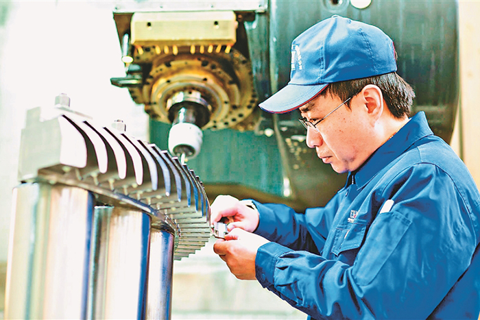 近日,記者推開(kāi)哈電汽輪機(jī)數(shù)控加工中心大門(mén),嘈雜的機(jī)器嗡鳴聲瞬間貫入耳中,董禮濤正全神貫注盯著加工件。