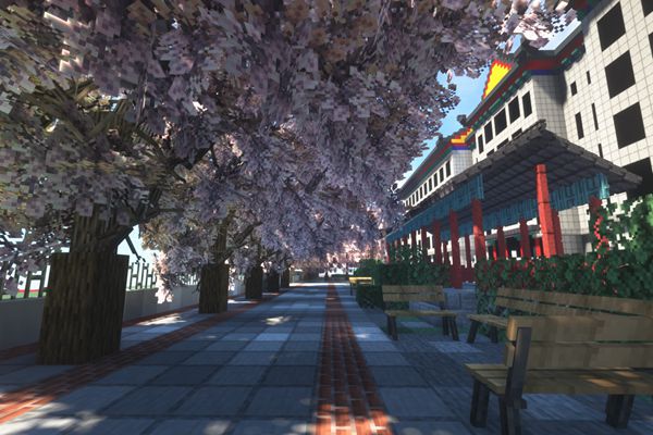 想要完美復(fù)刻校園,需要得到校園建筑實(shí)際數(shù)據(jù),再換算成游戲內(nèi)合適的尺寸。沒有現(xiàn)成的公開資料,除了查看衛(wèi)星地圖,用得最多的辦法就是一步一步丈量校園?!皢⒑介L150步寬120步,搭建周圍道路之前我花了一個多小時走了好幾遍?!必?fù)責(zé)道路鋪設(shè)的董鳴鑠說。奧列霍夫廣場、21號樓、北體育場……一座座與工程學(xué)子們?nèi)找瓜喟榈慕ㄖ谔摂M的世界里拔地而起。用方塊數(shù)最多的建筑是圖書館,作為東北最大的單體圖書館,弧形構(gòu)造也給他們帶來不小的挑戰(zhàn),最終復(fù)原圖書館的吳鑫宇用了15個小時完美呈現(xiàn)圖書館,一共用了83000多個立方塊。