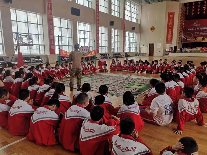 5月30日早8:00,初一學(xué)年100名學(xué)生分成四組開始了為期一天的拓展訓(xùn)練。拓展訓(xùn)練前,教練首先告訴同學(xué)們:軍人以服從紀(jì)律為天職,作為中國(guó)人應(yīng)懷著一顆感恩之心回報(bào)社會(huì)、建設(shè)祖國(guó)。