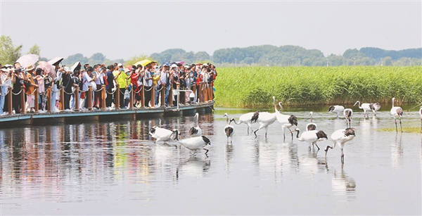 15日,第二個(gè)“鄉(xiāng)約扎龍·情滿鶴城”——“扎龍齊齊哈爾市民日”全面啟動(dòng)。當(dāng)日天藍(lán)水碧,徐徐微風(fēng)拂過(guò),眾多游客來(lái)到國(guó)際重要濕地之一的扎龍濕地感受濕地風(fēng)光的壯闊之美,欣賞鶴舞云翔的自然之美。馬麗娟 宋燕軍 黑龍江日?qǐng)?bào)全媒體記者 姚建平攝