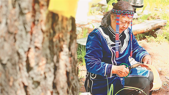 在新生鄂倫春族鄉(xiāng),舞蹈演員們伴隨著鼓聲跳動(dòng)著,生動(dòng)展示著鄂倫春族舞蹈和服飾。在民族體驗(yàn)區(qū),非遺傳承人拿出看家本領(lǐng),紛紛展示非遺魅力,鄂倫春族剪紙、樺樹皮制作、刺繡、皮袍制作……鄂倫春族原汁原味的傳統(tǒng)技藝一一呈現(xiàn)眼前。
