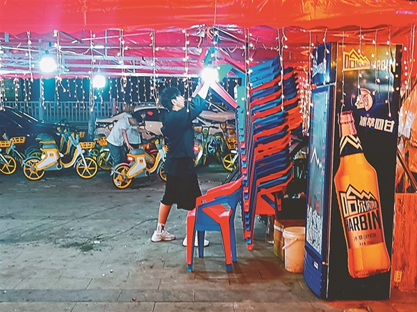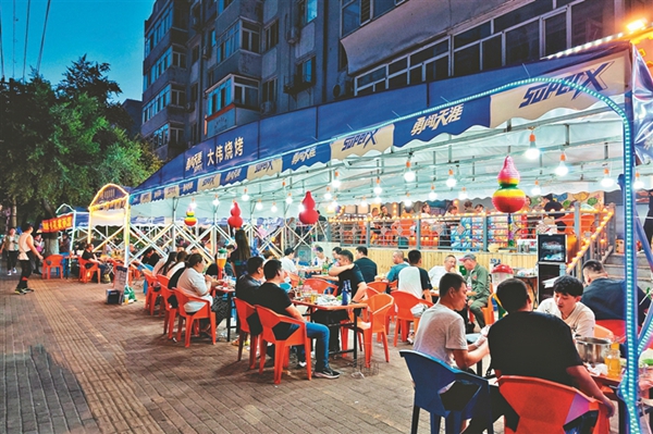 夜幕降臨,冰城街路的大排檔里,人們一邊吃著燒烤海鮮,一邊喝著啤酒,談天說地,不亦樂乎……仲夏六月,在大排檔允許外擺政策的推動下,夏日“夜經濟”越來越火熱,冰城濃濃的“煙火氣”回歸。大排檔既豐富了市民生活,冰城的快樂消費也開始了。
