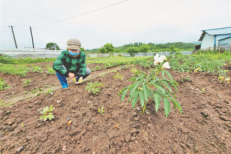 在一些特色民居小院里,栽種著芍藥。工作人員說:“我們2020年開始大力發(fā)展赤芍栽培深加工產(chǎn)業(yè)。村民利用小園種植赤芍,藥廠提供芽頭?!贝迕駨埍Ax說:“我種植了2.7畝,每年增收5000元呢!”