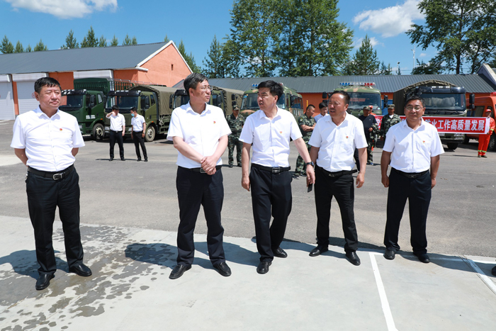 集團(tuán)森林防火辦黨委副書記、紀(jì)委書記、督查處長、工會(huì)主席回軍峰(中)深入到阿木爾林業(yè)局防火辦,點(diǎn)對點(diǎn)指導(dǎo)黨建共建工作(王力 攝)