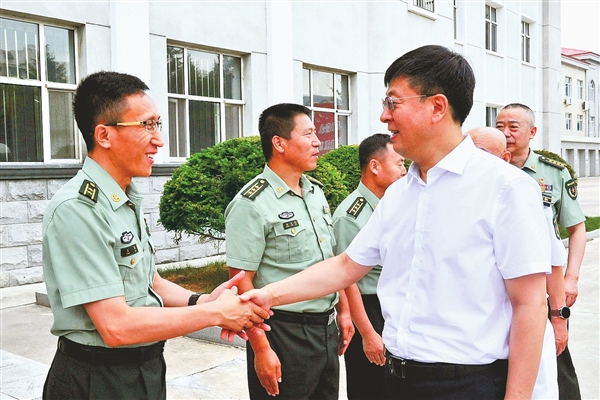7月29日上午,在伊春軍分區(qū),隋洪波親切慰問了官兵代表,并與軍分區(qū)有關(guān)領(lǐng)導(dǎo)干部座談。隋洪波指出,多年來,駐伊部隊和廣大民兵積極參與全市疫情防控、搶險救災(zāi)、維穩(wěn)處突、脫貧攻堅等工作,為守好祖國“北大門”和促進(jìn)伊春改革發(fā)展穩(wěn)定作出了突出貢獻(xiàn)。希望駐伊部隊官兵深入貫徹習(xí)近平強(qiáng)軍思想,牢牢把握黨管武裝正確方向,堅持黨對軍隊的絕對領(lǐng)導(dǎo),確保絕對忠誠、絕對純潔、絕對可靠,永遠(yuǎn)做黨和人民的忠誠衛(wèi)士。希望駐伊部隊官兵一如既往地支持伊春經(jīng)濟(jì)社會發(fā)展,積極參與伊春建設(shè),為加快伊春高質(zhì)量轉(zhuǎn)型發(fā)展繼續(xù)貢獻(xiàn)力量,在推進(jìn)伊春綠色崛起中發(fā)揮更大作用。