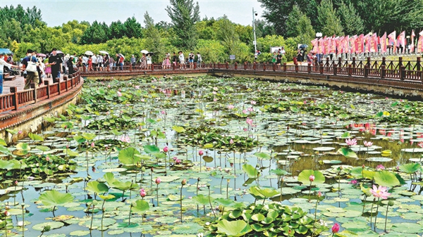 第二十六屆方正蓮花節(jié)開(kāi)幕當(dāng)天,湖光瀲滟、蓮花盛放的方正湖畔人潮如織,市民和游客一覽千畝蓮花盛開(kāi)的美景。
