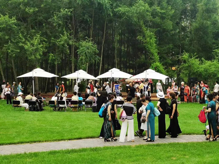 在文化創(chuàng)意園的核心位置,有一處面積為131.14平方米的半月狀森林舞臺。4000株大海棠花從2米高的創(chuàng)意作品啤酒筒潑灑而出,蜿蜒“流淌”。此景名為《森林飛花》,與森林舞臺交相呼應(yīng),相得益彰。