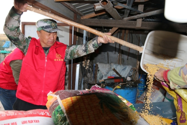 接著大家又來(lái)到明桂琴和程少和老人家中。在明桂琴老人家中,黨員同志們一走進(jìn)院子,正趕上老人家中的糧食沒有碼放好灑了一地,大家立刻七手八腳的把糧食收好裝入袋中。在隨后的座談慰問中,老人回想起這些年工作隊(duì)的同志們對(duì)自己的熱心幫扶,感動(dòng)得熱淚盈眶。