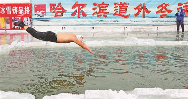 在松花江上冬泳,是延續(xù)著哈爾濱冬泳傳統(tǒng)的火種,展示著哈爾濱冰雪文化的魅力。本報記者 張澍攝
