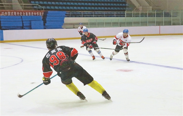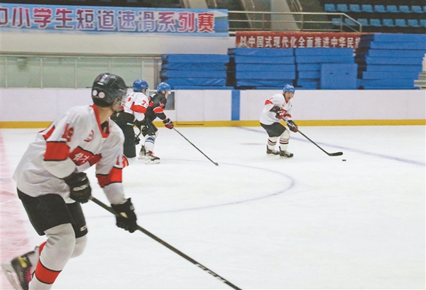 快速走位、高速滑行、靈活運(yùn)球、有力射門……佳木斯市滑冰館內(nèi),冰球隊(duì)員們正在緊張集訓(xùn),備戰(zhàn)省運(yùn)會(huì)和全國(guó)錦標(biāo)賽。