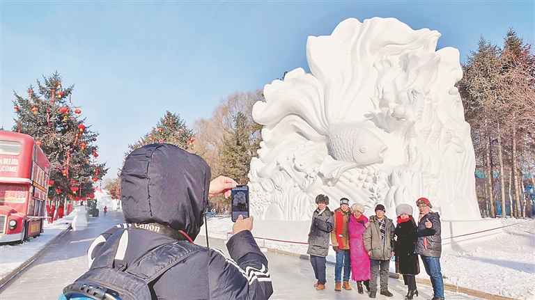 本報(bào)訊(記者 蔣國(guó)紅)“這個(gè)魚雕得太好看了,快給我拍張照!”在第35屆中國(guó)·哈爾濱太陽(yáng)島國(guó)際雪雕藝術(shù)博覽會(huì)現(xiàn)場(chǎng),游人或乘坐電瓶車,或徒步欣賞著美麗的雪塑盛宴。