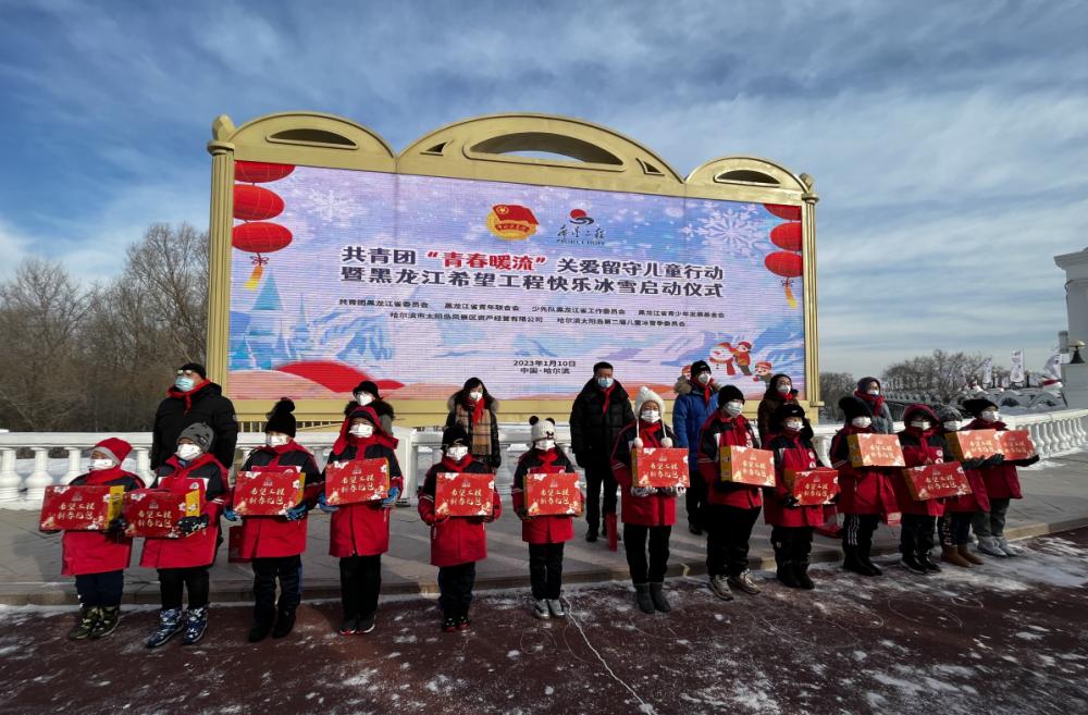 黑龍江經(jīng)濟(jì)網(wǎng)訊(于佳弘 記者祝東)1月10日上午,共青團(tuán)“青春暖流”關(guān)愛(ài)留守兒童行動(dòng)暨黑龍江希望工程快樂(lè)冰雪公益項(xiàng)目啟動(dòng)儀式在哈爾濱太陽(yáng)島國(guó)際雪博會(huì)舉行?;顒?dòng)由共青團(tuán)黑龍江省委員會(huì)指導(dǎo),由黑龍江省青年聯(lián)合會(huì)、少先隊(duì)黑龍江省工作委員會(huì)、黑龍江省青少年發(fā)展基金會(huì)聯(lián)合舉辦,并得到了太陽(yáng)島風(fēng)景區(qū)資產(chǎn)經(jīng)營(yíng)有限公司、哈爾濱太陽(yáng)島第二屆兒童冰雪季組委會(huì)、哈爾濱市松北前進(jìn)小學(xué)校的大力支持。共青團(tuán)黑龍江省委副書(shū)記夏天、哈爾濱市太陽(yáng)島風(fēng)景區(qū)資產(chǎn)有限公司黨委書(shū)記、董事長(zhǎng)趙經(jīng)濤和黑龍江省青聯(lián)、黑龍江省少工委、黑龍江省青基會(huì)以及來(lái)自哈爾濱市松北區(qū)前進(jìn)小學(xué)的留守兒童和黑龍江大學(xué)的留學(xué)生,共70余人參與了活動(dòng)。