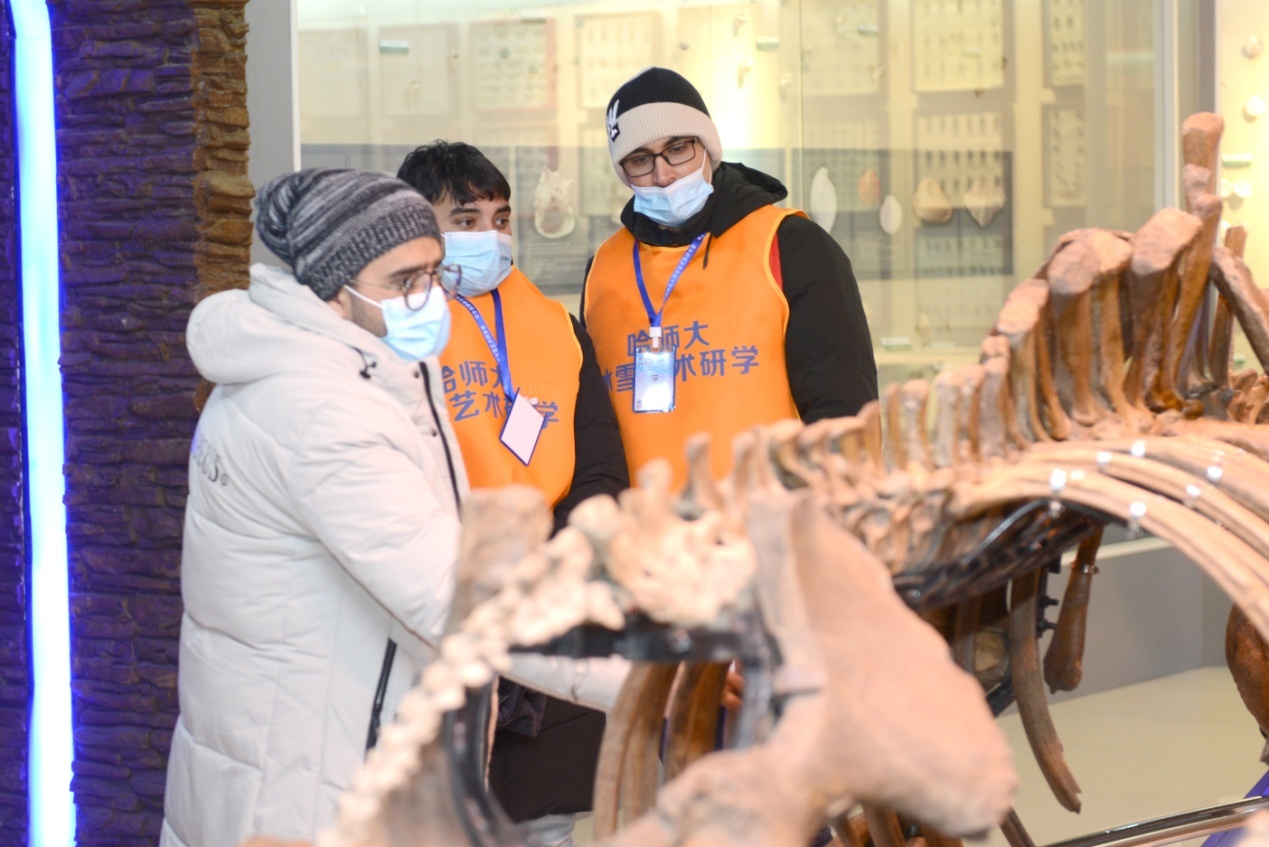 下午,共同走進(jìn)哈爾濱師范大學(xué)。在哈師大文博館,化石、甲骨片、石器、陶器等文物珍品,將中國文化展現(xiàn)給各國青年,讓留學(xué)生感受中國的悠久歷史,了解中華文化的博大精深。在哈師大動植物標(biāo)本館,森林景觀、草原景觀、大型鳥獸、植物標(biāo)本等13個展區(qū),像一部厚重的生物史和生物多樣性教科書,展現(xiàn)了千姿百態(tài)、栩栩如生的生命畫卷。