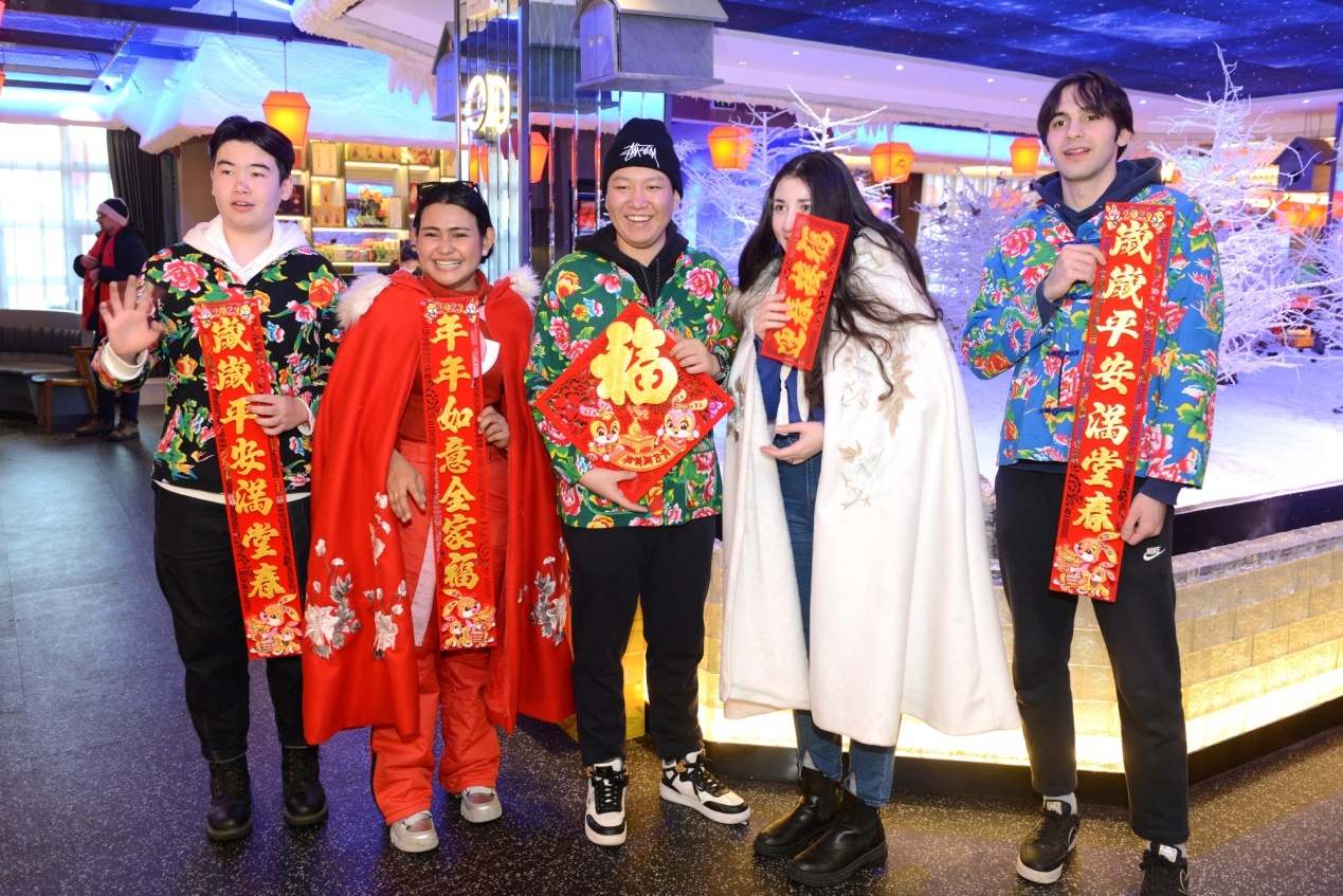 當(dāng)天上午,在雪博會,來自黑龍江大學(xué)的各國留學(xué)生代表與中國青少年結(jié)對互動,互贈新春禮物,表達(dá)對即將迎來的兔年美好祝福。中外青少年小手拉大手,共游太陽島雪博會,鯉魚躍龍門、圓夢啟程、雪冠博覽等雪雕雪景讓大家流連忘返。世界各國青少年一起雕刻“宇航員”雪雕,送上春聯(lián)祝福語,體驗(yàn)了中國傳統(tǒng)文化和濃濃的年味,表達(dá)了對世界文化共融的美好祝愿。