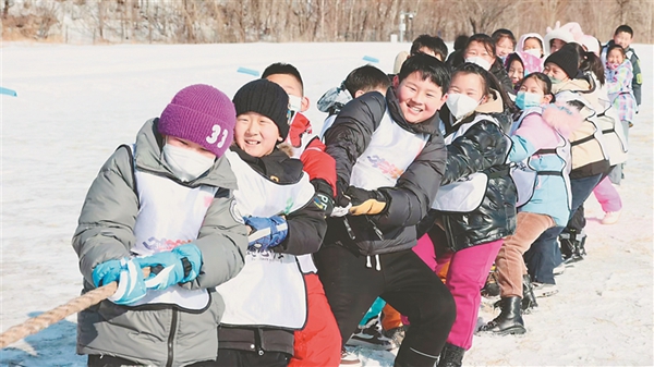 雪地拔河大比拼。