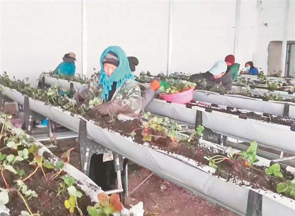 “早上7點去,下午4點多就收工回來了,離家近,每天能賺150元,挺好的。”張金香說。走進產(chǎn)業(yè)園的草莓溫室大棚,如張金香一般來自谷大村的女工們正認真地進行著手中的工作。移栽、覆膜、澆水……14萬株蘊含著期待與希望的草莓秧苗正在茁壯成長。