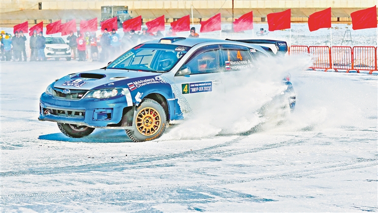 本次比賽地點設在中俄界江黑龍江江面上。比賽設置大排量和小排量兩個組別,進行資格賽和決賽的比拼,雙方各派出20輛汽車參賽。比賽采用電子計時和機械計時兩種方式,參賽選手分別在周長1.5公里的A型場地和3.8公里的B型場地上駕車行駛,兩次用時之和為最終比賽成績,用時最短者勝出?,F場500多名中俄觀眾共賞這場冰雪汽車挑戰(zhàn)盛宴。