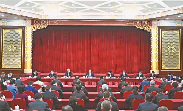 3月6日,中共中央總書(shū)記、國(guó)家主席、中央軍委主席習(xí)近平看望參加全國(guó)政協(xié)十四屆一次會(huì)議的民建、工商聯(lián)界委員,并參加聯(lián)組會(huì),聽(tīng)取意見(jiàn)和建議。中共中央政治局常委、全國(guó)政協(xié)十四屆一次會(huì)議主席團(tuán)會(huì)議主持人王滬寧,中共中央政治局常委蔡奇、丁薛祥參加看望和討論。新華社記者 謝環(huán)馳攝