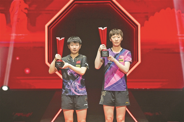 本報訊(記者楊鐳)18日晚,2023年世界乒乓球職業(yè)大聯盟(WTT)大滿貫賽新加坡站女雙決賽,黑龍江籍奧運冠軍王曼昱與孫穎莎攜手出戰(zhàn),擊敗另一對中國組合陳夢/王藝迪,衛(wèi)冕成功。