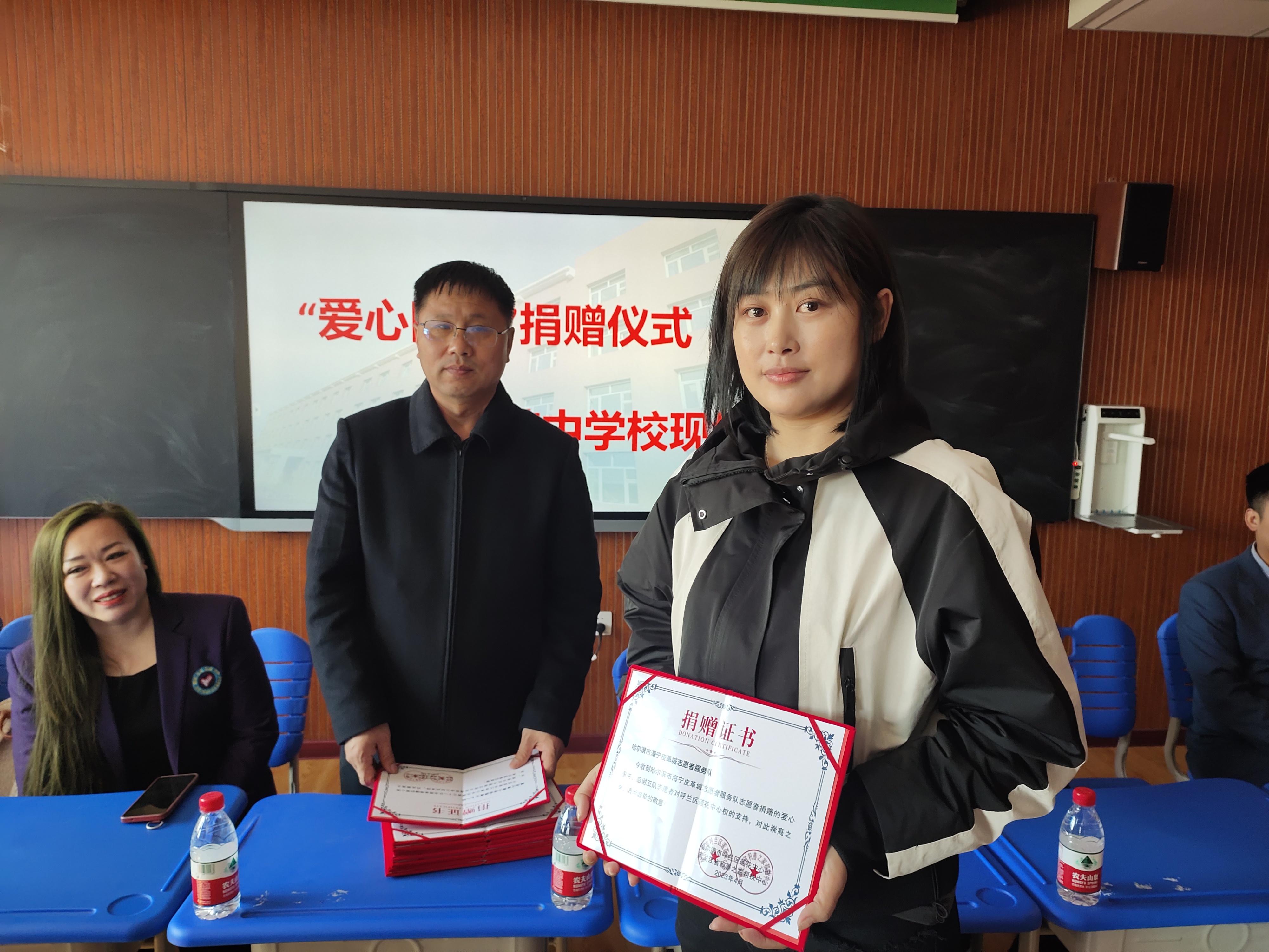 蓮花中心校校長孫洪斌在捐書儀式上做了誠摯的發(fā)言,承諾會好好利用這些書,給孩子們營造一個良好的讀書氛圍,讓孩子們真正體會到讀書的重要性以及讀書所帶來的益處。