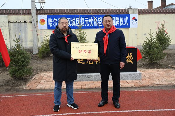 其父趙元忱,1959年加入中國共產(chǎn)黨,祖籍黑龍江省雙城農(nóng)豐鎮(zhèn)(原正白頭屯)。幼年因家貧失學,解放后,在黨的關(guān)懷幫助下完成學業(yè)投身祖國建設。為銘記黨恩,回報家鄉(xiāng),委托其子捐建此所希望學校。