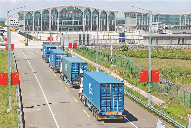 “黑河經(jīng)驗(yàn)”碩果累累——跨境運(yùn)輸車輛“一站通”綜合查驗(yàn)管控新模式,有效解決了進(jìn)出境運(yùn)輸企業(yè)辦理車輛注冊(cè)備案時(shí)存在的堵點(diǎn);創(chuàng)新自走機(jī)械通關(guān)新模式,為口岸通關(guān)提供了可復(fù)制可推廣的“黑河樣板”;創(chuàng)新合作模式,打造形成規(guī)劃統(tǒng)籌、產(chǎn)業(yè)互動(dòng)、政策銜接、利益共享的協(xié)同發(fā)展機(jī)制,共同推進(jìn)跨境集群建設(shè),取得重大進(jìn)展;利用跨境電商海外倉(cāng)、邊境倉(cāng)、中繼倉(cāng)、前置倉(cāng),通過(guò)數(shù)據(jù)集成、貨物集運(yùn),實(shí)現(xiàn)多倉(cāng)聯(lián)動(dòng),打通了“一帶一路”沿線國(guó)家進(jìn)出口雙向貨運(yùn)物流便捷通道,運(yùn)輸時(shí)間縮短、物流成本降低、貨物快速運(yùn)達(dá),提高了跨境運(yùn)輸效率……首創(chuàng)推出典型案例137項(xiàng),其中40項(xiàng)獲評(píng)全省優(yōu)秀案例,形成了一批可復(fù)制可推廣的“黑河案例”。