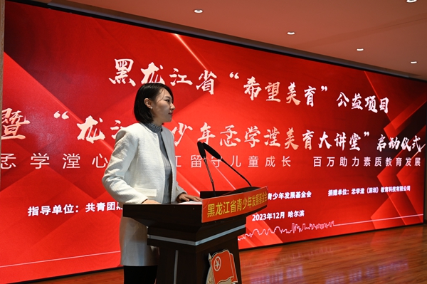 為深入貫徹習近平總書記對希望工程實施30周年的重要寄語精神,進一步提升新時代希望工程的助學育人質(zhì)量,12月12日,黑龍江省“希望美育”公益項目暨“龍江青少年孞學漟美育大講堂”啟動儀式在希望大廈舉行。黑龍江省文學藝術(shù)界聯(lián)合會一級巡視員張正明,共青團黑龍江省委副書記代東力,黑龍江省青聯(lián)委員、深圳市孞學漟教育科技有限公司創(chuàng)始人楊梓杺,黑龍江省民政廳、黑龍江省青少年發(fā)展基金會等相關(guān)單位領(lǐng)導,嘉仁公益、益家公益代表,伙伴計劃社區(qū)代表,哈爾濱市松北區(qū)樂業(yè)小學“童心港灣”代表,哈爾濱市蘇寧紅軍小學校、哈爾濱市合眾人壽希望小學、哈爾濱新區(qū)第三學校等學校師生代表參加活動。