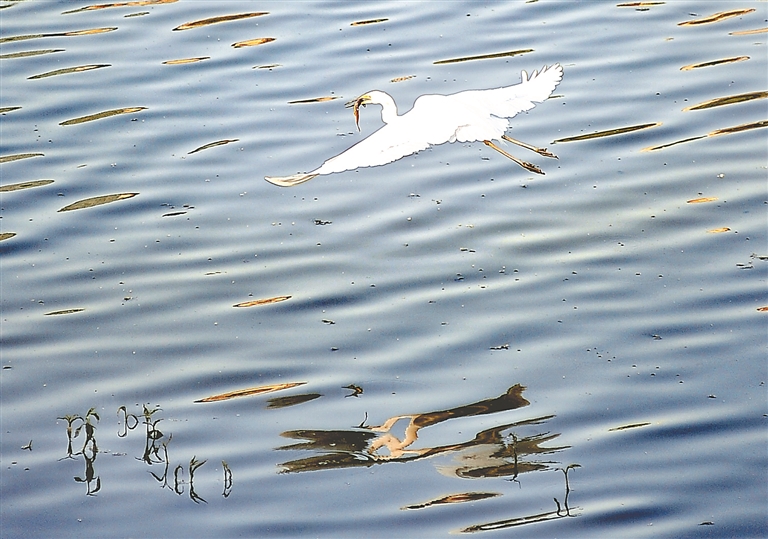 近日,哈爾濱市道里區(qū)友誼西路附近的何家溝畔,一只白鷺多次飛到這里休憩、捕魚。