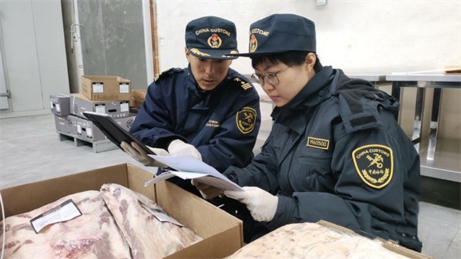 為助力我省跨境貿(mào)易發(fā)展,保障消費者“舌尖上的安全”,哈爾濱海關(guān)所屬冰城海關(guān)嚴格查驗的同時,優(yōu)化服務(wù),助力中俄跨境冷鏈物流大通道建設(shè)。