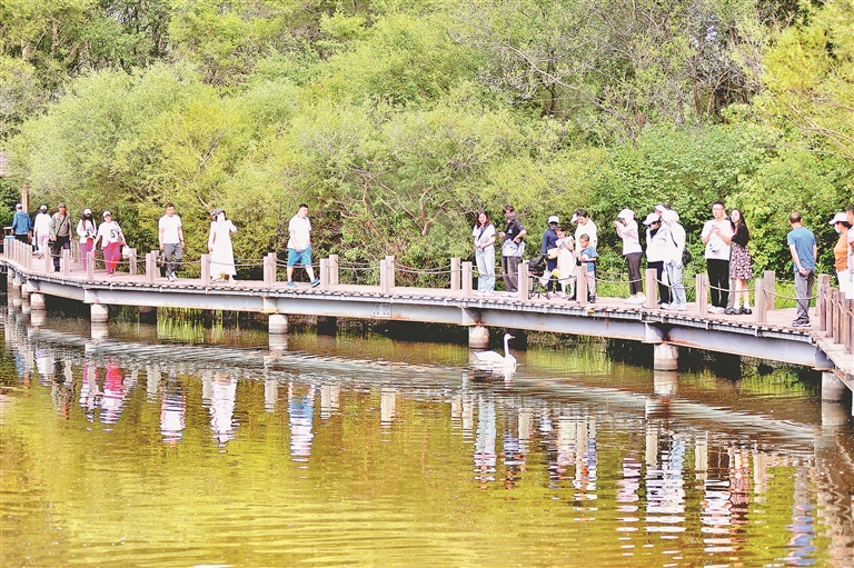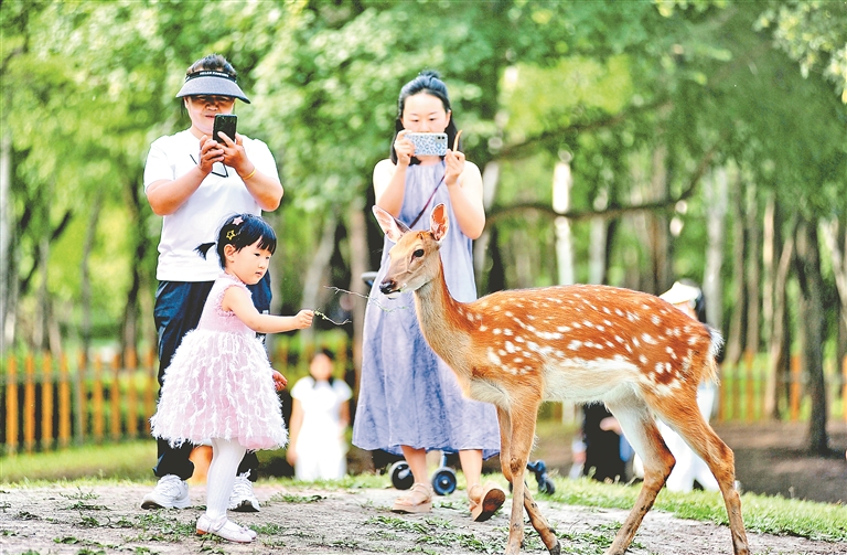 16日,陽(yáng)光明媚,空氣清新,哈爾濱市迎來(lái)了好天氣。太陽(yáng)島上,草木茂盛,百花爭(zhēng)艷,許多本地市民和南方游客組團(tuán)來(lái)到這里避暑游玩。有的游人搭起帳篷野餐,有的游人走上濕地棧道觀賞美麗風(fēng)景。孩子們玩過(guò)各種游樂(lè)項(xiàng)目后,再與小鹿、松鼠等小動(dòng)物來(lái)個(gè)親密接觸。