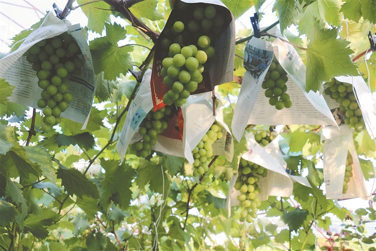 “我種的這個葡萄品種叫夏黑,外形像乒乓球,口感清脆,較甜,施用農(nóng)家肥做底料,成熟早又耐運(yùn)輸,收購商特別喜歡。一畝地產(chǎn)葡萄2000斤以上,除去成本,一個大棚純收入3萬元以上,收入十分可觀?!狈N植戶曹偉勝欣喜地說。