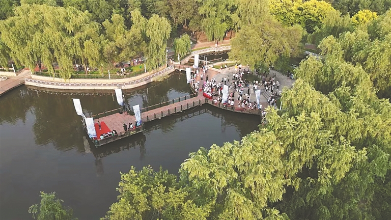 黛秀湖公園里香坊區(qū)職工歌手大賽舞臺(tái)。