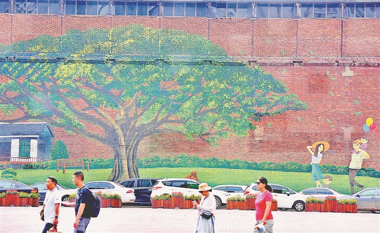 哈爾濱市道外區(qū)東直路上,路邊的花卉景觀與墻體彩繪互相映襯,成為街頭一道美麗風(fēng)景,引得人們紛紛駐足觀看。畫(huà)里的溪流、小徑、樹(shù)木、花草、動(dòng)物與畫(huà)外的綠地巧妙結(jié)合起來(lái),融為一個(gè)整體,創(chuàng)意新穎,視覺(jué)效果良好,讓人眼前一亮。