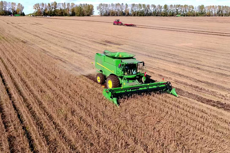 也正如老李說的,糧食豐產(chǎn)豐收,離不開農(nóng)業(yè)的科技支撐。在取得2023年全國農(nóng)墾提單產(chǎn)“大比武”優(yōu)勝農(nóng)場(chǎng)的基礎(chǔ)上,引龍河農(nóng)場(chǎng)有限公司黨委按照省委農(nóng)村工作會(huì)議、北大荒集團(tuán)、北安分公司備春耕生產(chǎn)工作推進(jìn)會(huì)議精神,以振興中國大豆產(chǎn)業(yè)為己任,落實(shí)落靠“穩(wěn)糧擴(kuò)豆”任務(wù),將大豆大面積單產(chǎn)提升作為農(nóng)業(yè)生產(chǎn)的主攻方向。2024年,這個(gè)農(nóng)場(chǎng)大豆一年“重茬”面積5.7萬畝,占大豆播種面積的18.23%;兩年“重茬”面積6.9萬畝,占大豆播種面積的21.91%;兩年以上“重茬”面積9.2萬畝,占大豆播種面積的29.22%。為更加有效應(yīng)對(duì)大豆重茬,農(nóng)場(chǎng)通過應(yīng)用重茬大豆提單產(chǎn)的各項(xiàng)措施,例如底肥增施生物有機(jī)肥和微生物菌肥,花期噴施大量元素水溶肥和微生物菌劑,大豆的產(chǎn)量有了非常明顯的提升,成熟度非常好,而且百粒重提高了1.5克,單數(shù)平均增加了1.9個(gè)莢數(shù)和3.48個(gè)粒數(shù)。與此同時(shí),還以深松為重點(diǎn),結(jié)合翻、耙、旋、起、壓等措施,提高整地質(zhì)量,打破板結(jié)層,增加土壤透氣性,奠定大豆播種基礎(chǔ),為大豆萌發(fā)和根系生長(zhǎng)創(chuàng)造良好的土壤條件,并選擇土壤有機(jī)質(zhì)含量高地塊種植“重茬”大豆。合理安排大豆播種順序,先播種正茬大豆,待溫度回暖后再播“重茬”大豆,避免低溫冷量“重茬”病害的疊加。