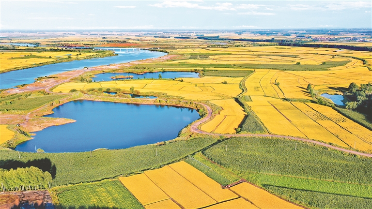 本報(bào)訊(張?chǎng)斡睿┌嗽率宥ㄊ粘桑瘘S的稻田預(yù)示著豐收在望。今年,中國(guó)寒地黑土特色農(nóng)業(yè)物產(chǎn)之鄉(xiāng)綏化市種植綠色優(yōu)質(zhì)水稻面積超450萬(wàn)畝,高產(chǎn)優(yōu)良品種覆蓋率實(shí)現(xiàn)100%,全市嚴(yán)把選種、育苗、插秧和田間管理等關(guān)口,特別是規(guī)模種植主體大面積實(shí)施“一噴多促”作業(yè),水稻長(zhǎng)勢(shì)喜人。目前,綏化市水稻部分良種繁育田已開(kāi)始秋收工作,大規(guī)模收獲將陸續(xù)展開(kāi),沃野“豐收在望”正轉(zhuǎn)化為糧食“顆粒歸倉(cāng)”。