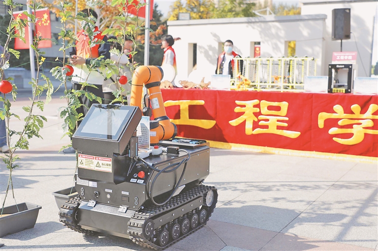 活動(dòng)現(xiàn)場(chǎng)設(shè)有七大主題展區(qū),通過(guò)展覽、體驗(yàn)、品鑒等多種形式,讓師生親身感受耕讀文化的魅力。師生們紛紛走入展區(qū),沉浸式體驗(yàn)耕讀文化節(jié)展示項(xiàng)目。在智慧裝備體驗(yàn)區(qū),師生們觀(guān)看神奇的化學(xué)電源和化學(xué)溫度計(jì)等現(xiàn)場(chǎng)展示,體驗(yàn)骨導(dǎo)通訊眼鏡等裝備;在食品體驗(yàn)區(qū),師生們品嘗果蔬、酸奶、肉類(lèi)食品等;在校友企業(yè)體驗(yàn)區(qū),師生們聆聽(tīng)返校校友秉承“三農(nóng)”情懷,矢志以科技報(bào)國(guó)的學(xué)農(nóng)為農(nóng)故事;在花藝茶藝體驗(yàn)區(qū),師生們?cè)诨ㄏ闼囊缰懈惺懿寤ㄋ囆g(shù)的魅力。