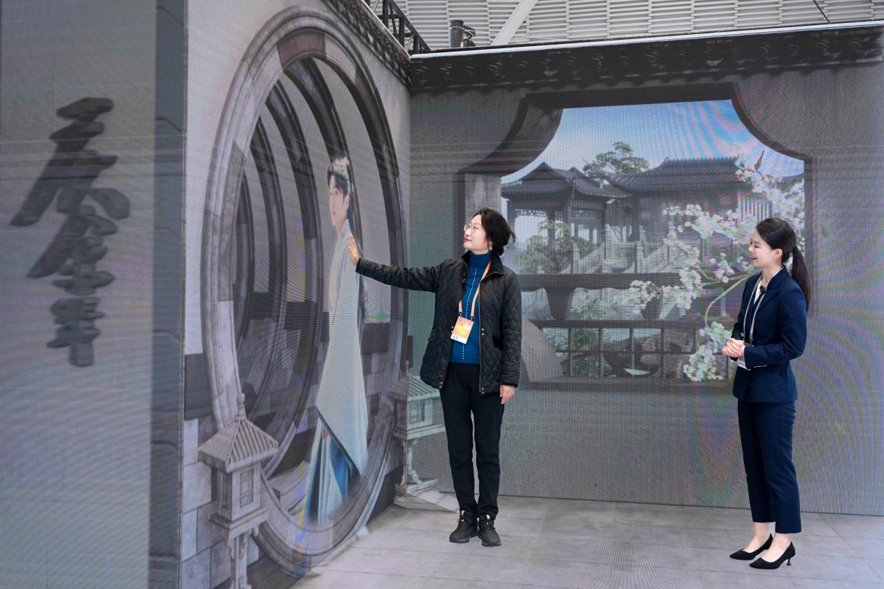 文化板塊,是騰訊本次展會的一大亮點。在“騰訊文化IP盒子”中,集合騰訊文學、影視、音樂、游戲、電競、動漫六大板塊的文化產(chǎn)業(yè)集群躍然眼前。在以裸眼3D模式呈現(xiàn)的三面屏中,觀眾可以一覽騰訊文化產(chǎn)業(yè)的全球布局,走入《慶余年》《繁花》等IP經(jīng)典場景中進行合影,并通過現(xiàn)場設置的AI智能體,與劇中的虛擬角色實時語音互動。