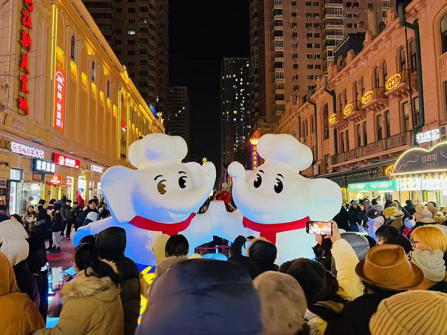 除了“白象”標志性小象IP格外吸睛之外,因其與“對象”諧音的巧妙設計,也吸引著往來行人紛紛駐足。雪雕前人潮涌動,不少市民游客在“對象”前合影留念。這一創(chuàng)意不僅為游客增添別樣的溫暖與歡樂,也在社交媒體掀起一陣“找對象”的熱潮。活動期間,“對象雪雕走紅哈爾濱”的話題登上熱搜榜。不少網友調侃:“這就去哈爾濱找對象?!币灿腥吮硎?,看完小象雪雕,感覺爾濱的冬天都充滿了浪漫的氣息。