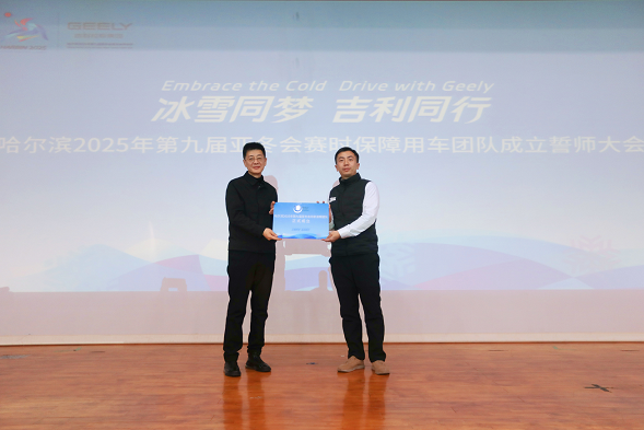 在莊重而熱烈的氛圍中,現(xiàn)場(chǎng)隆重舉行了乘用車保障團(tuán)隊(duì)授旗儀式。駕駛員們整齊列隊(duì),許下了鄭重的承諾:“精準(zhǔn)調(diào)度,安全駕駛,嚴(yán)格守時(shí),真情服務(wù)。高效整備,細(xì)致維護(hù),保障有力,穩(wěn)健運(yùn)行。全力實(shí)現(xiàn):零投訴、零延誤、零事故。用真情護(hù)航,用智慧開(kāi)道,冰雪同夢(mèng),吉利同行。”