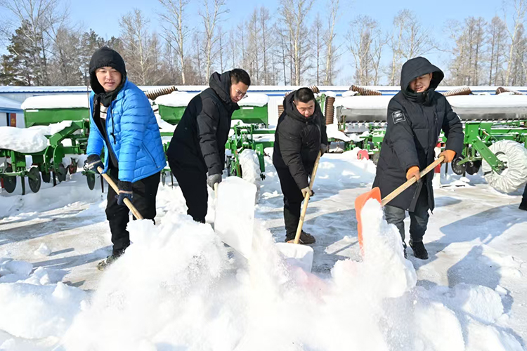 “眼下天氣逐漸回暖,為了避免氣溫上升造成積雪融化而形成冰層,影響后續(xù)工作,我們采取鏟車清雪、人工清邊的措施,確保將農(nóng)具場積雪徹底清理干凈,為農(nóng)機具檢修提供良好環(huán)境。”管理區(qū)工作人員說。