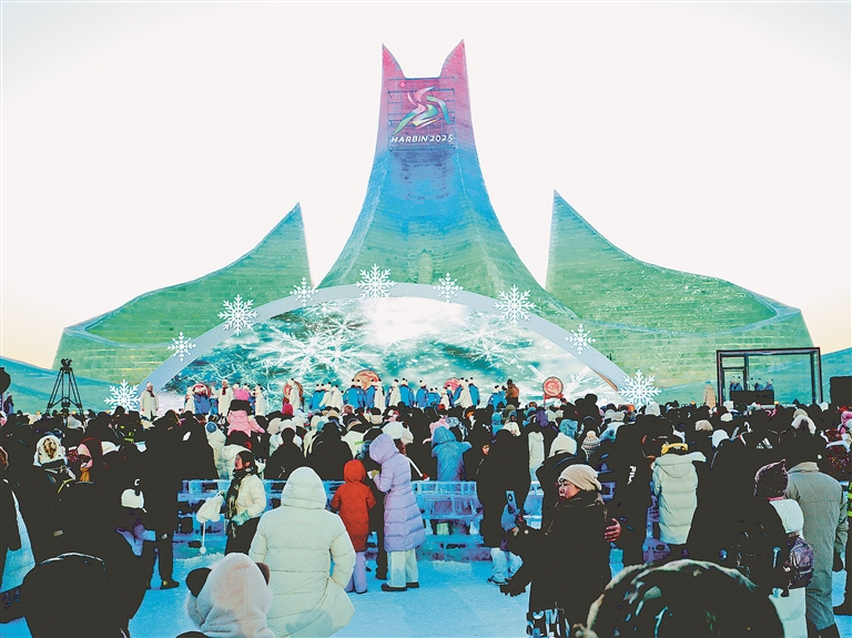 精美與靈動(dòng)相互交織,園區(qū)內(nèi)亞冬會(huì)氛圍濃厚。“我們?cè)趫@區(qū)內(nèi)看到很多亞冬會(huì)元素的冰雪景觀,像雪雕‘濱濱’‘妮妮’、會(huì)徽大地景觀等,準(zhǔn)備逐個(gè)打卡?!鄙綎|游客許多開心地說。