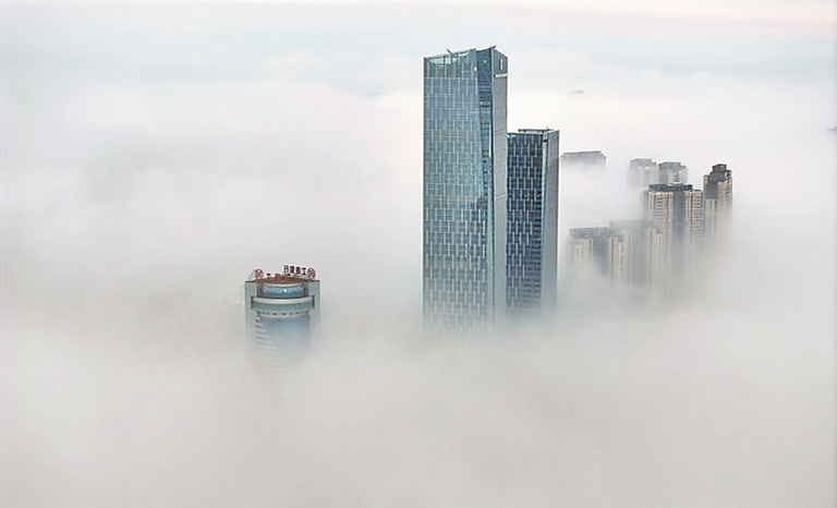 7日,清晨的哈爾濱,大街小巷被濃濃的平流霧籠罩。松花江上,漁船化作剪影,鷗鳥僅聞啼鳴,霧中的景色如水墨畫般淡雅。