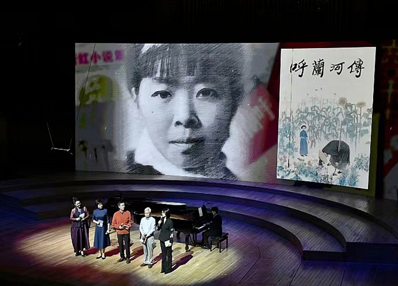“蕭紅已成為黑土地的精神路標!蕭紅作品中對人民的悲憫、對命運的抗爭、對家國的摯愛,恰是東北文化與中華民族精神的堅韌內(nèi)核!”由著名主持人敬一丹擔任誦講人,開幕式演出以“情景音樂會”為創(chuàng)新形式,分《序曲》《松花江上》《抗戰(zhàn)的烽火》《文脈永續(xù)》四大篇章展開。音樂會在《呼蘭河邊的小姑娘》合唱中拉開帷幕,童聲與交響樂交織再現(xiàn)蕭紅筆下菜園里的純真目光;情景朗誦《呼蘭河傳》以抒情語調(diào)勾勒東北風情長卷,喚醒觀眾對蕭紅故鄉(xiāng)的想象。